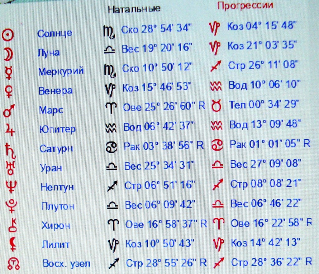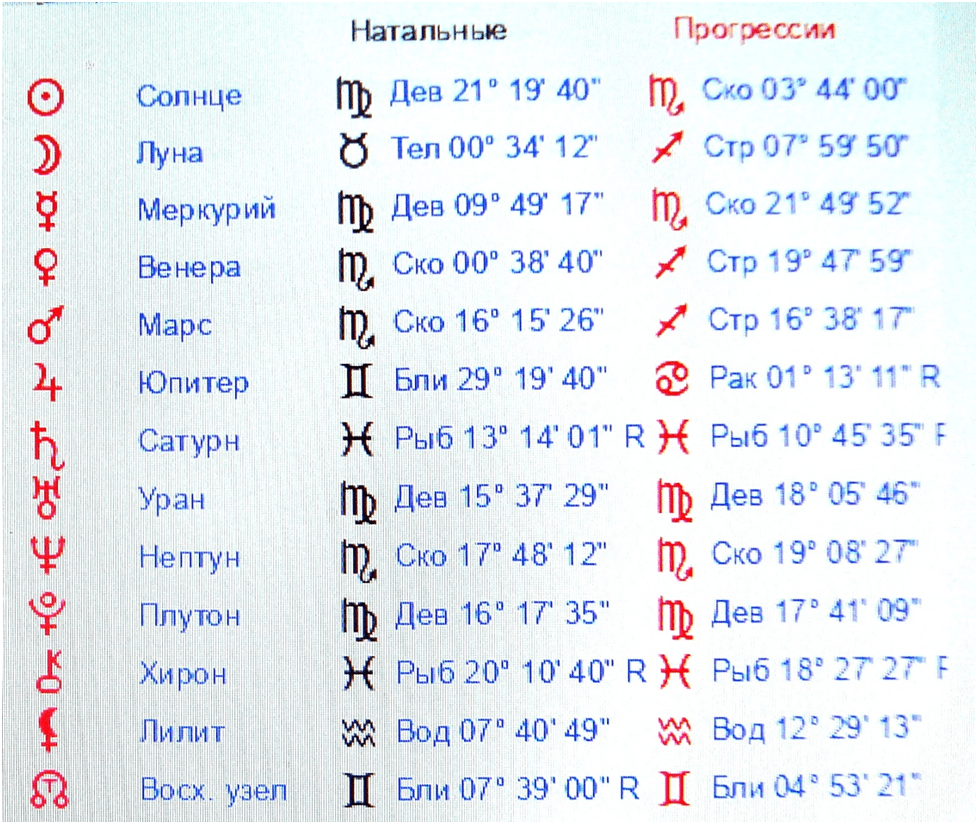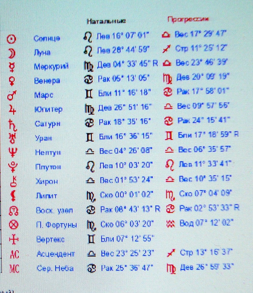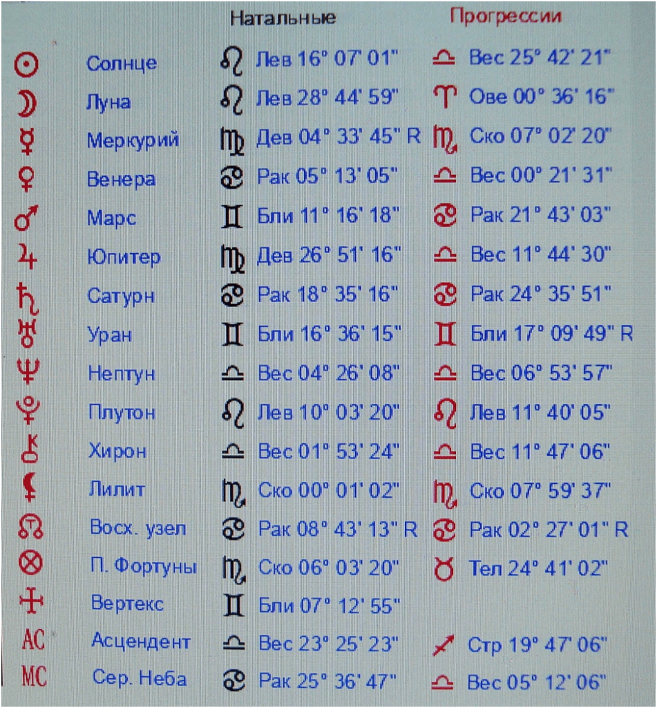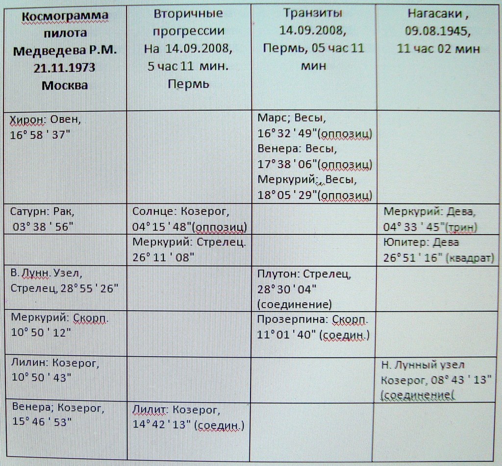 Таблица 5 . Космограмма пилота Медведева Р.М. и вторичные прогрессии на 14.09.2009 на г. Пермь на 5 час 11 мин.