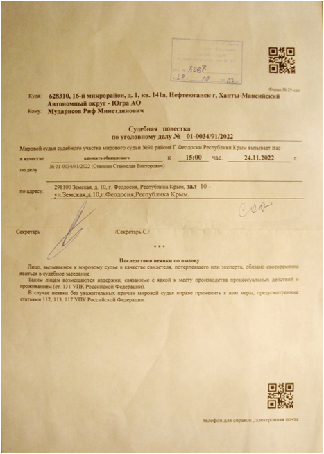 29.11.2022 Александр с утра отправил мировому судье судебного участка № 91 Феодосийского судебного района республики Крым заявление по электронной почте о том, что из- за отдаленности местонахождения просит назначить другого адвоката для защиты клиента «С» . После чего при мысли о том, что образование республики Крым было политически неверным шагом по электронной системе дежурства поступил запрос на 15 часов по гражданскому делу 2-3370/2022 представлять интересы Муравского Александра Артуровича. При этом, стационарный телефон секретаря судьи заканчивался на 325 (психиатрия). Александр согласился на участие в деле, на некоторое время зашел в магазин, пришел к себе, снова пошел знак, на сей раз звонила Файруза, сообщив, что она уже въехала в выделенную ей новую квартиру. Александр по динамике знаков сообразил, что гражданское дело будет содержать элемент мошенничества, по нескольким причинам, с одной стороны Файруза несла символ: «не допустить до президентской власти Путина В. В. и Трампа Д. в 2024 году». Ранее же давались знаки о том, что Трамп Д. и Путин В.В. — это «две мошеннические структуры». С другой стороны, знаки на участие в гражданском деле давались на фоне отправки письма в республику Крым, более того, по окончанию трех цифр стационарного телефона речь шла о психически больных людях, каковыми являются Путин В.В. и Трамп Д. К 15 часам он направился в суд. На переходе у больничного комплекса две автомашины убирали снег. Одна из них грузила снег в кузов другой автомашины. Машина загораживала светофор, номер ее был 455- символ Дональда Трампа. На этом перекрестке навстречу проехала «Газель» с надписью «Дети». Пока символ «дети» был непонятен. Мошенничество в деле Александр увидел сразу же. Истец Сбербанк ПАО предъявил к клиенту иск на 648 000 рублей при кредитном лимите карты в 75 000 рублей. Доказательств в деле никаких не было, кроме нарисованных банком банковских операций, которые несложно сделать на компьютере. Александр высказал свое мнение по делу. Судья , ушла в совещательную комнату для вынесения решения, вернувшись, сообщила о том, что дело возобновляется производством, суд делает запрос истцу, чтобы было пояснено наличие таковой задолженности, и следующее заседание состоится 7.12.2022 года. Стал более понятнее вырисовываться символ «дети», поскольку шла вибрация на гибель детей в автокатастрофе в Нефтеюганском районе, похороны состоялись 6 или 7. 12 2016 года, у Александра 7.12. 2022 года исполнялась 15- летняя годовщина работы адвокатом по дате выдачи удостоверения, за основу берется символ «дети». «Вот тут- то я вас и обую в 15- летнюю годовщину работы адвокатом»,- рассуждал он. Однако, реальность оказалась другой. Документами, переданными ответчиком, в судебное заседание к 7.12. 2022 года, ничего не подтверждалось, было написано, что в банке не сохранилось документов на бумажных носителях, которые хранятся пять лет. Не сохранилось и СМС ответчику об изменении лимита кредита. Александр заявил ходатайство о применении срока исковой давности с момента предъявления иска , отсчитав три года назад. Вместе с тем, суд удовлетворил требования истца, которого не было на суде. Комментируя ситуацию Вселенная заострила внимание на отсутствие денежных средств в казне государства вследствие военных действий. То есть, навешивались суммы займов на людей, которые этих 